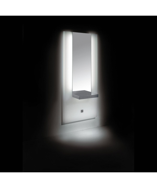 Зеркало парикмахерское "Time 2 Wall" - прямоугольной формы. Рама зеркала выполнена из пластика белого цвета. Зеркало оснащено подсветкой и металлической хромированной столешницей. Крепление к стене.