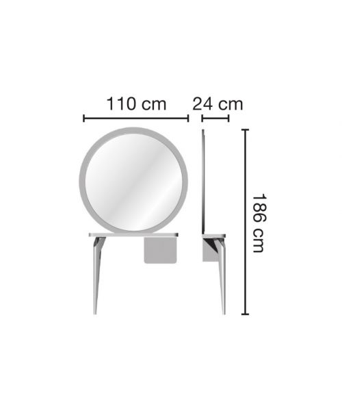 Зеркало парикмахерское "TONDO" с артикулом С-м60002740 - Каркас из меламинового белого или черного цвета, с выдвижным ящиком и ножкой из литого алюминия