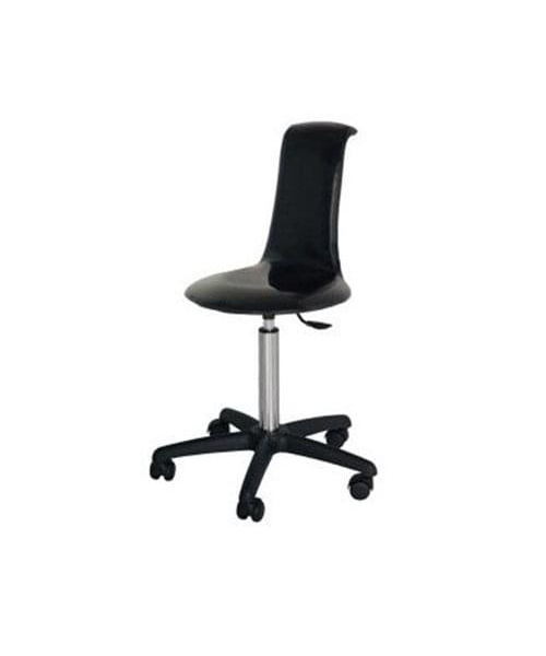 Стул для мастера с высокой спинкой, выполнен из гнутой фанеры в обивке из искусственной кожи, основание пластиковое пятилучье черного цвета на колесах, регулировка высоты пневматическая. Вариант цвета обивки под заказ – широкая цветовая палитра.