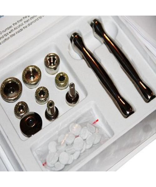 Каждая отдельная насадка содержит слой алмазного напыления различного диаметра для проведения глубокого и поверхностного пилинга кожи в комплексной процедуре микродермабразии.