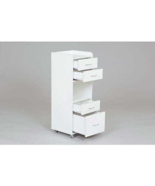 РоссияКосметологическая тележка "ТК-3" изготовлена из практичного и прочного ЛДСП белого цвета. Изделие имеет четыре ящика различной высоты, что позволяет мастеру разместить инструменты и оборудование как малых, так и больших размеров. Верхняя полка оснащена бортиком, который предотвращает падение предметов при перемещении тележки.