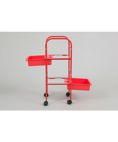 - Пластмассовая панель с отверстиями для емкостей легко снимается, и модель можно использовать как обычную парикмахерскую тележку.