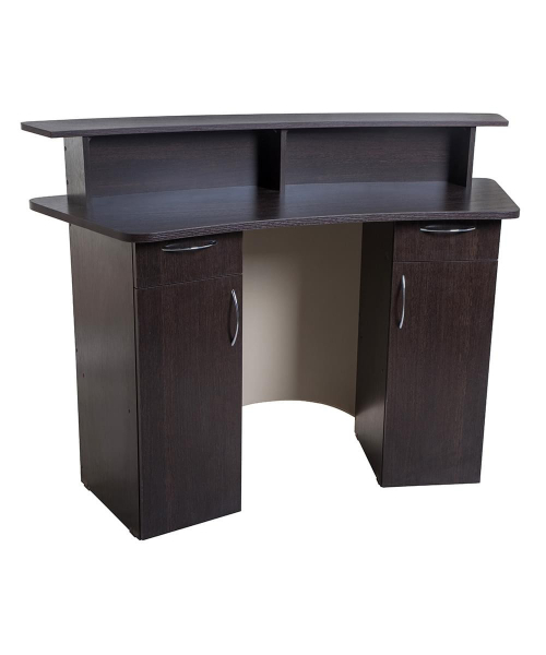 Ресепшн "Орион ll" состоит из стильной тумбы, которая оснащена выдвигающимся ящиком и отделом с дверцей. Для изготовления этой модели ресепшна используется качественный ЛДСП, а декоративная вставка на фронтальной части изготовлена из кожзама. Ресепшн "Орион ll" представлен в нескольких цветовых гаммах, но заказав индивидуальное изготовление в нашем интернет-магазине вы можете самостоятельно выбирать цвет как ламинированной ДСП, так и декоративной вставки, обтянутой искусственной кожей.