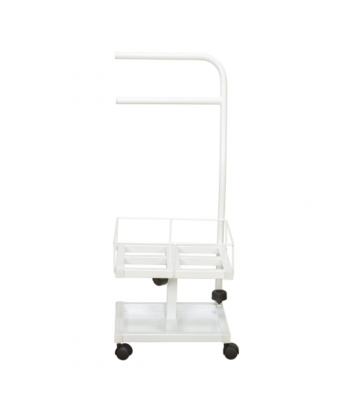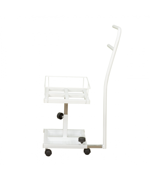 Благодаря двухъярусной конструкции можно установить не только ванную, но также необходимые инструменты и приспособления. Ванночка снимается для чистки и дезинфекции. Удобную ручку можно использовать как для перемещения педикюрного оборудования, так и для развешивания полотенец. Встроенные колеса обеспечивают маневренность и бесшумность передвижения по любому типу напольного покрытия.